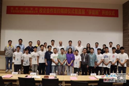 本网讯:为引导和促进更多赣科学子留赣服务经营主体、尽早实现就业,今年以来,bat365官方网站深入走访、深度调研本地企业,积极搭建校企合作平台,有序推进2023届学生到本地企业进行实习。暑期伊始,bat365官方网站与孚能科技(赣州)股份有限公司校企合作首届“孚能班”开班,“孚能班”15名学生在bat365官方网站过渡期管委会副主任邓亦林与孚能科技赣州基地总经理常彦学等校企双方领导见证下,采用“3+0.5+0.5”培养模式,进驻企业进行长学时实习实践。