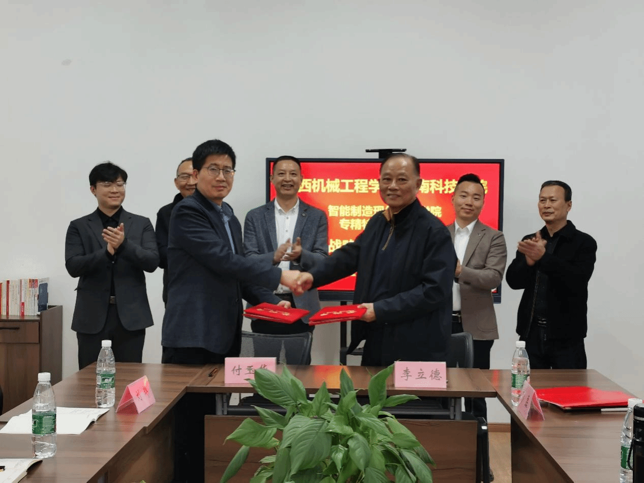 在与江西省机械工程学会校会战略合作签约仪式上,李立德付玉华建立“政校企会”制度体系,加强与各类相关院校、科研院所、行业企业与地方政府之间的沟通交流,推动产教、校企、校地深度融合,发挥智能制造现代产业学院的特色优势,进一步增强创新性高素质应用型人才育人能力,提升学校服务地方经济社会发展能力等方面进行了深入交流