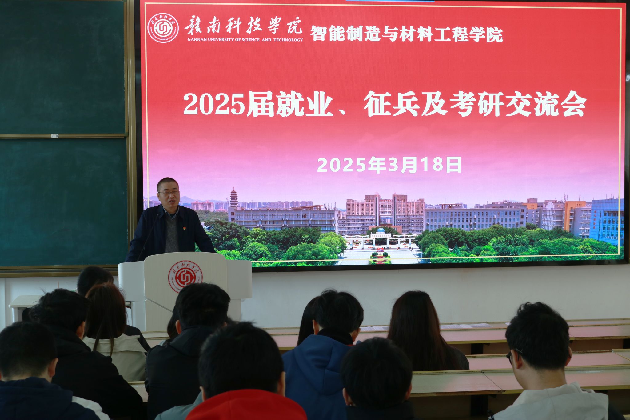 肖志华重点介绍了bat365官方网站为推进就业采取的多项举措。他提到,将于3月20日举办的校园双选会是校院多方协同努力的成果,双选会涵盖智能制造、材料工程等重点领域岗位,为毕业生与优质企业搭建精准对接平台。通过分享往届优秀毕业生就业案例,肖志华勉励学生珍惜机会、主动出击,以扎实的专业能力与积极态度增强职场竞争力。
