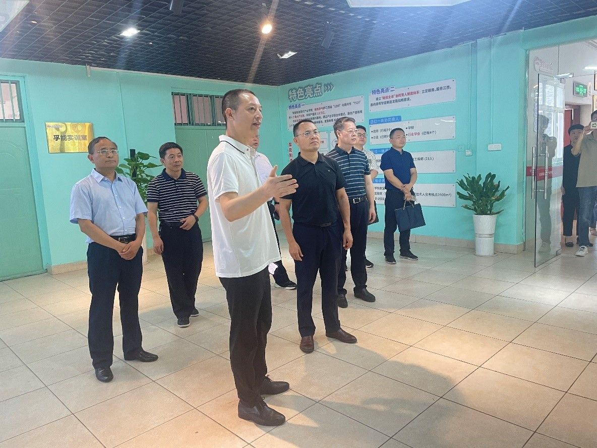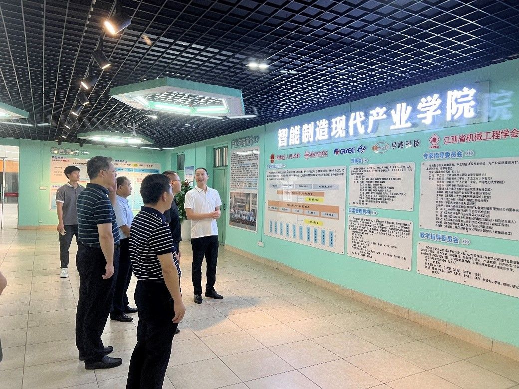 5月27日,江西省教育厅副厅长刘小强一行到智能制造现代产业学院调研指导,bat365党委书记邱建军,党委副书记、校长李国金,党委委员、副校长左群,党委委员、副校长何锦龙陪同调研,智能制造现代产业学院执行院长刘辉讲解并引导。教务处、bat365官方网站相关负责人、格力电器(赣州)有限公司总经办主任洪志勇参加活动。