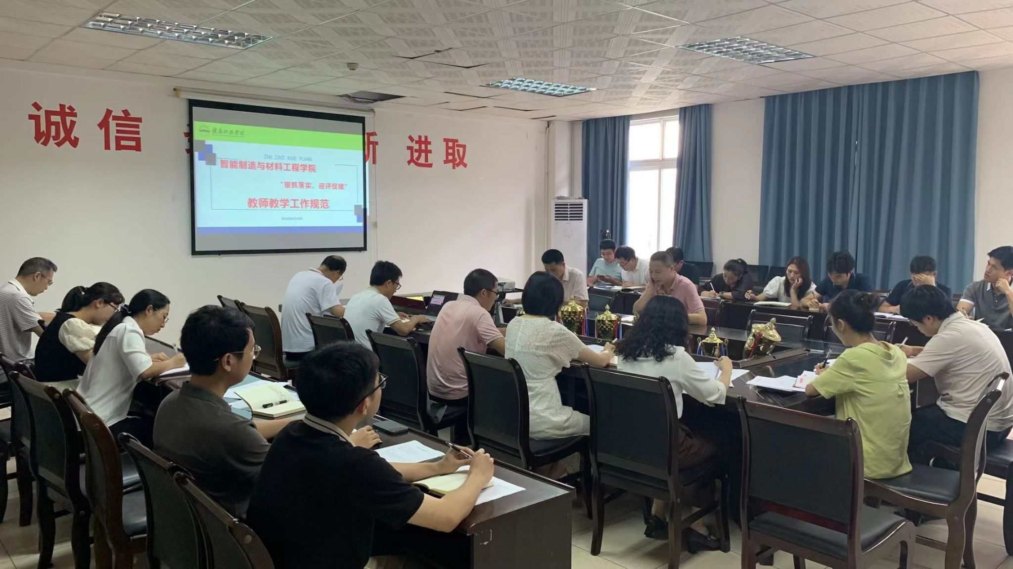 会议最后,关开荣总结强调了教学工作规范是学院保障教学工作平稳运行的有效机制,是每位老师应该严格遵守的行为准则,尤其是在考试试卷、毕业设计及实训报告等教学材料存档存在的问题应引起重视,希望老师能够自查自纠,不断提升教学工作质量和水平。