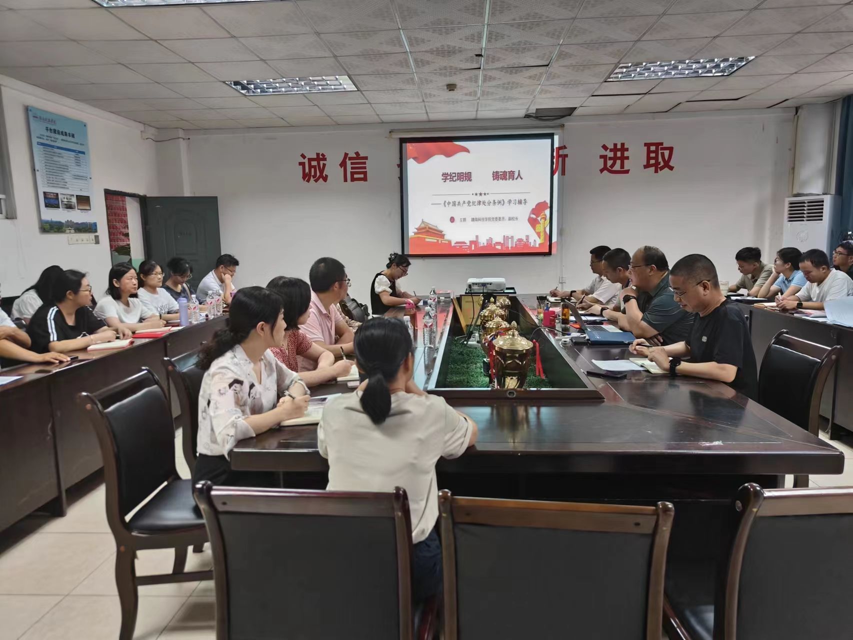 左群首先就党纪学习教育的背景、目标要求、重要意义、学习内容等进行解读,并通过回顾《条例》的修订历程,强调严明纪律对于党的事业发展的重要性。他指出,新修订的《条例》是全面从严治党的有力武器,是全体党员必须严格遵守的行为准则。随后,左群对新修订的《条例》进行了逐章逐条的解读,通过剖析违纪典型案例,深入浅出地阐述了党的政治纪律、组织纪律、廉洁纪律、群众纪律、工作纪律和生活纪律等方面的内容,用“身边事”教育“身边人”,让党员、干部对一些事情该不该做、能不能干有了更加深刻直观的认识。他强调,学党纪,作表率,党员领导干部要发挥“头雁效应”;学党纪,正身心,要做“经师“人师”相统一的“大先生”;学党纪,明规矩,要引导学生扣好人生第一粒扣子。