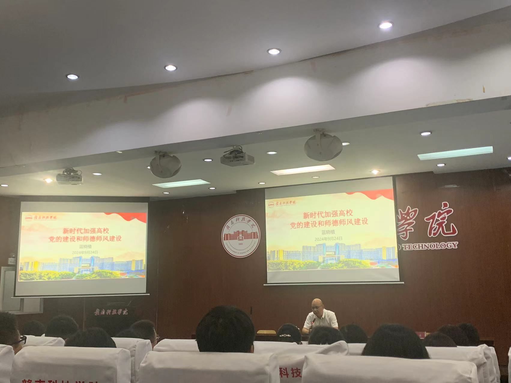 本网讯:为深入学习贯彻党的二十大和二十届二中、三中全会精神和习近平总书记考察江西重要讲话精神,学习领会《中共中央国务院关于弘扬教育家精神加强新时代高素质专业化教师队伍建设的意见》,全面贯彻党的教育方针,紧抓立德树人根本,着力提升教师思想政治教育素质及职业道德水平。9月24日下午,校党委委员、组织人事部部长蓝晓植在MBA学术报告厅为bat365官方网站教师作“新时代加强高校党的建设和师德师风建设”专题讲座。