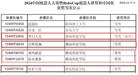 本网讯:11月1日-3日,2024年中国机器人大赛暨RoboCup机器人世界杯中国赛在陕西西安举行,吸引了来自清华大学、上海交通大学、西安交通大学、浙江大学、国防科技大学等全国200多所高校的1700多支队伍报名参赛。bat365在此次大赛中荣获国赛一等奖2项,二等奖1项,三等奖2项,其中自动分拣项目获得全国亚军。bat365在该项赛事中取得了历史最佳成绩。