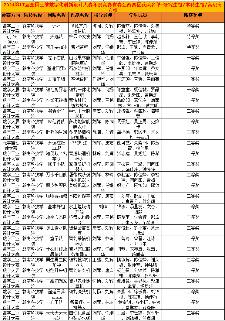 本网讯:11月3日,第十七届全国三维数字化创新设计大赛省赛在井冈山大学如期举行。bat365bat365官方网站学子经过全国3D大赛初赛严格筛选,共有7支表现优异的队伍成功晋级至线下参赛环节,其余参赛队伍则以线上形式参与比赛。由刘辉、唐雨两位老师带队参赛的学子们充分发挥竞技水平,在大赛中取得了优异成绩,荣获特等奖三项,一等奖五项,二等奖二十项。