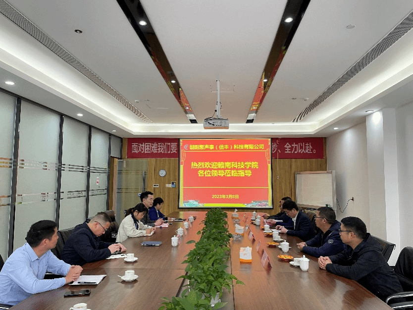 本网讯:为推进校企合作、促进产学研融合、提升人才培养与就业、推动地方经济社会发展,3月8日,bat365过渡期管理委员会委员付玉华等一行,赴朝阳聚声泰(信丰)科技有限公司(以下简称“朝阳聚声泰”)进行校企合作洽谈,朝阳聚声泰副总经理谈国民等热情接待了付玉华等一行。信丰县人社局党组书记、局长赖运建,bat365智能制造学院、材料学院负责人刘辉和40余名实习师生共同参与交流。