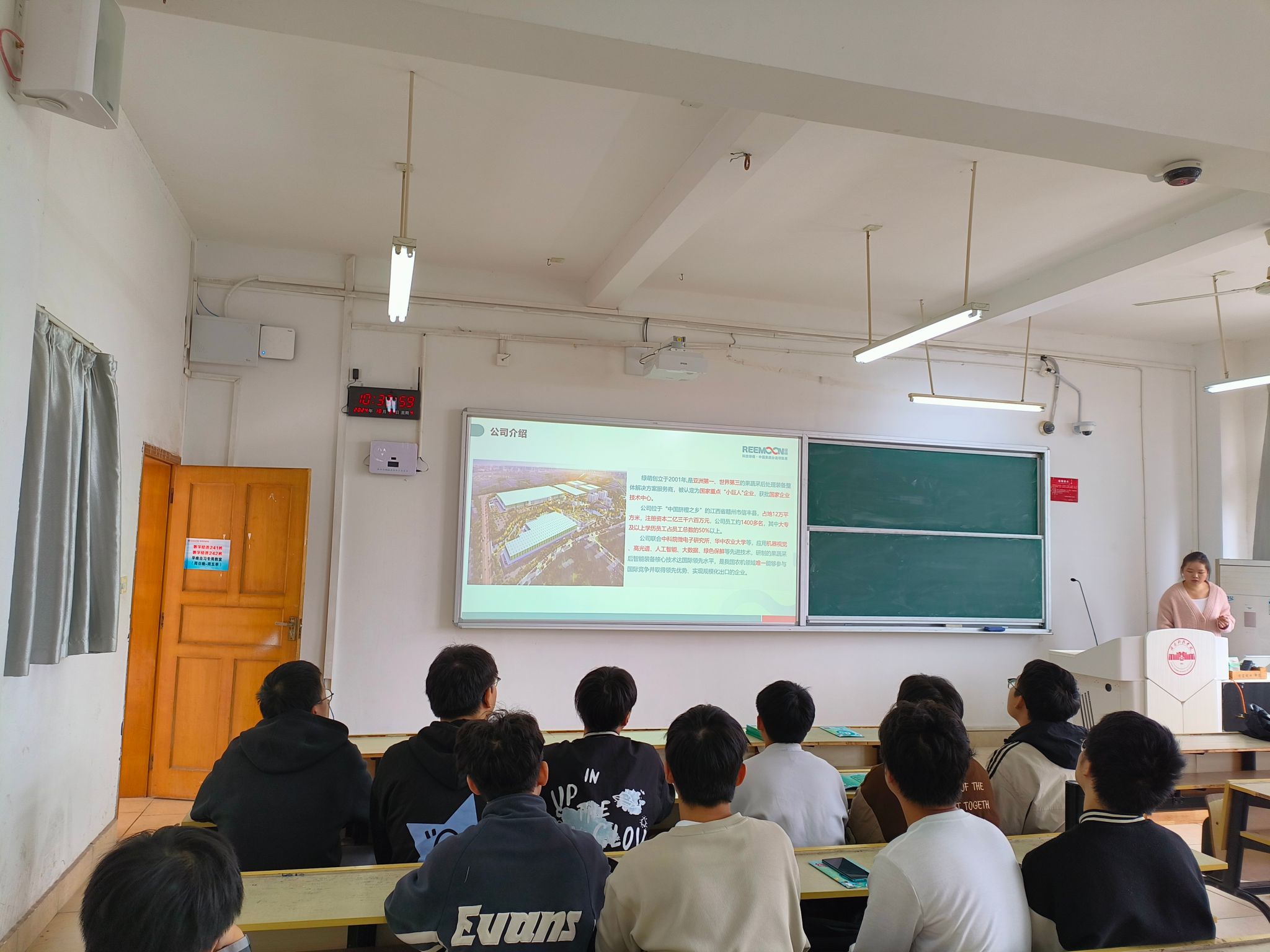 在招聘会上,邱萍详细阐述了绿萌科技股份有限公司的主营业务范围、企业文化特色、人才培养体系以及员工的职业发展规划等方面内容。她还针对同学们提出的关于公司福利、工作环境条件、具体工作内容以及休假安排等疑问,给予了耐心细致的解答。