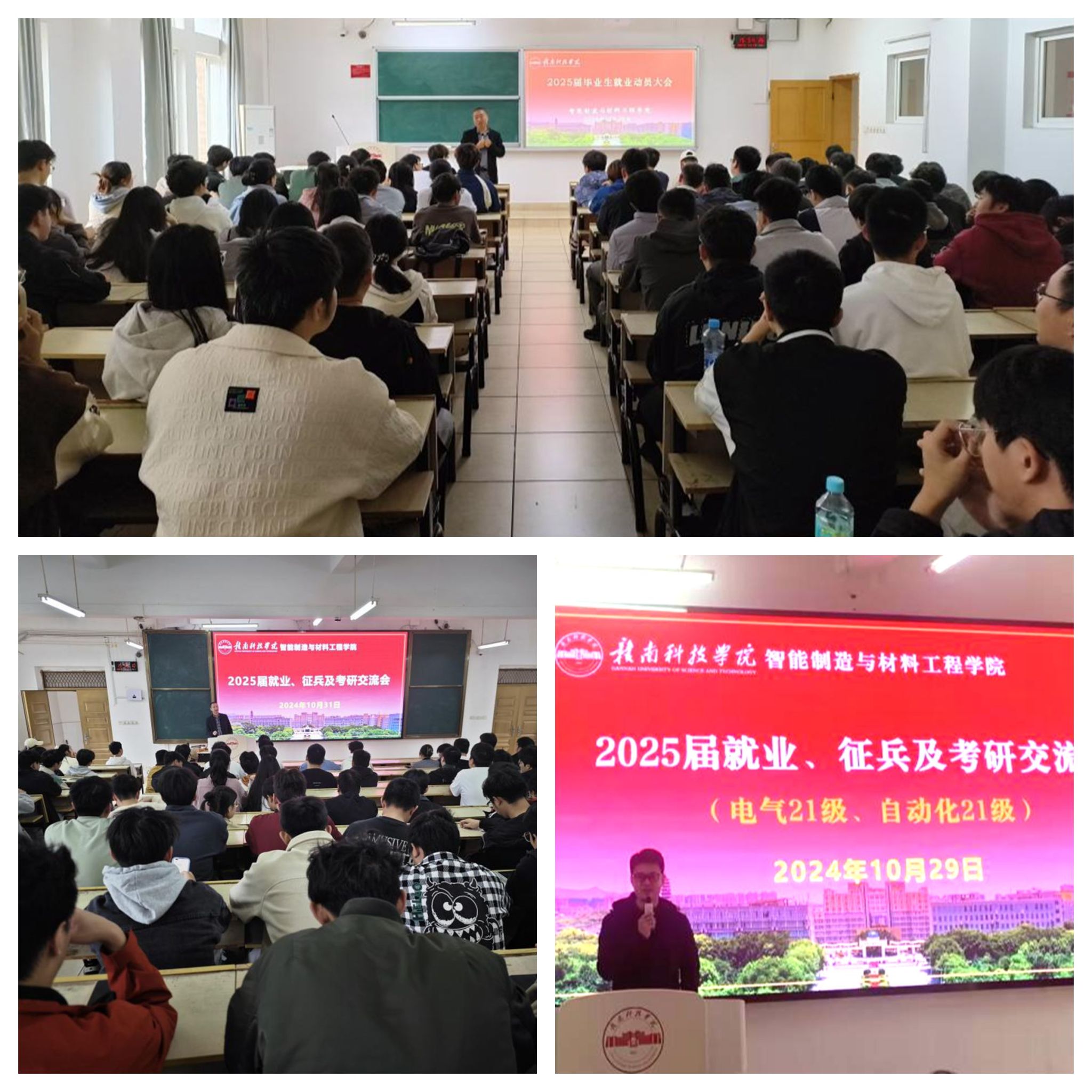 本网讯:10月31日,bat365官方网站在主教Z122、Z1D1和Z1D2教室为学院2025届毕业生召开考研、就业交流会。学院党委副书记朱根松、副院长刘辉、学工负责人肖志华以及毕业班辅导员和全体2025届毕业生参与交流会。