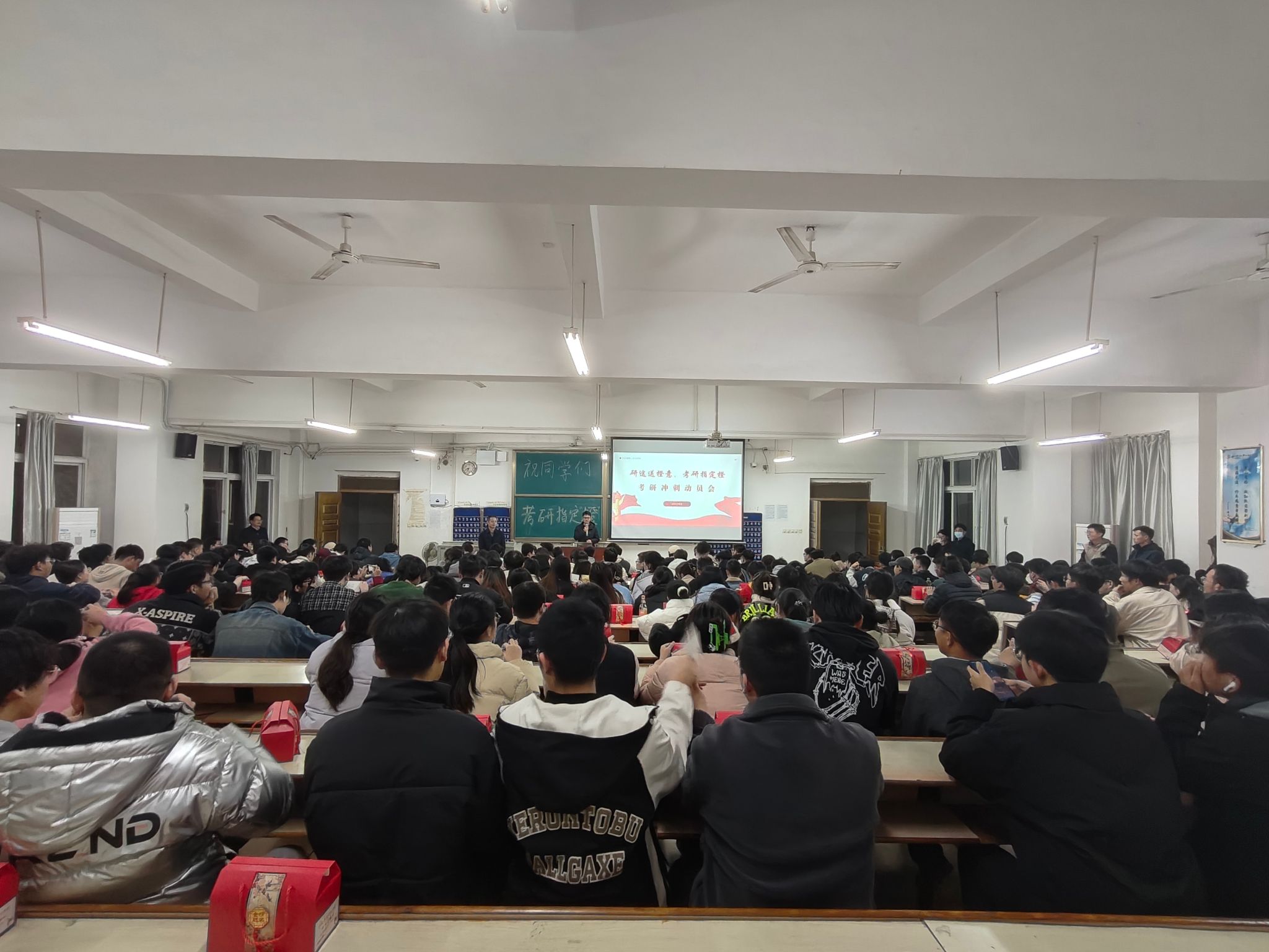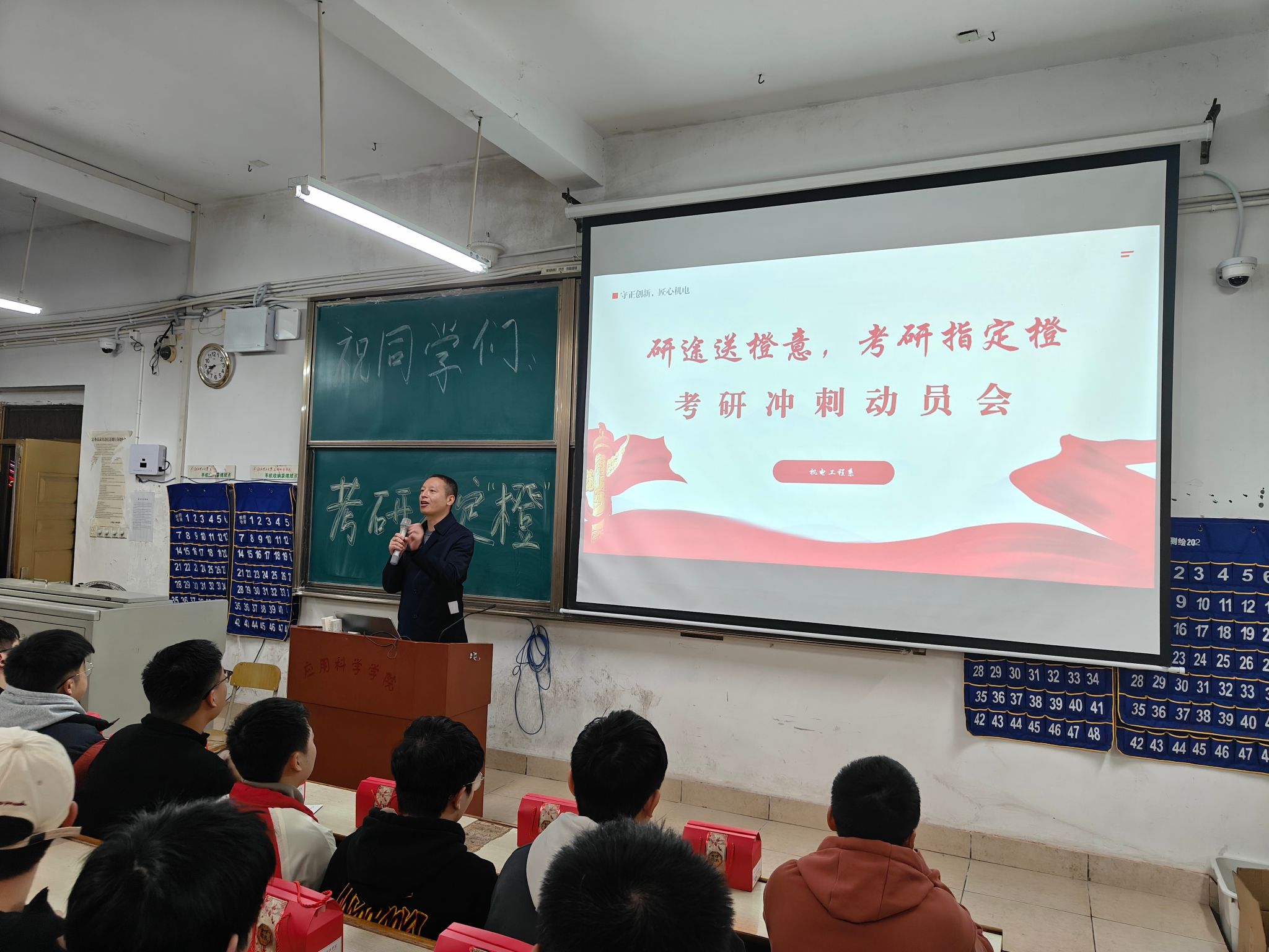 本网讯:2023年全国硕士研究生统一考试即将开始,为帮助备考学子们树立信心,化压力为动力,以最饱满的精神状态应对研究生考试,在考研途中激流勇进,bat365官方网站机电工程系于12月12日20:30在主教Z1D4召开“研途送橙意,考研指定橙”考研冲刺动员大会。机电工程系主任刘辉、副主任肖志华和关开荣、全体辅导员以及2024届全体考研学生参加本次会议,此次会议由肖志华主持。
