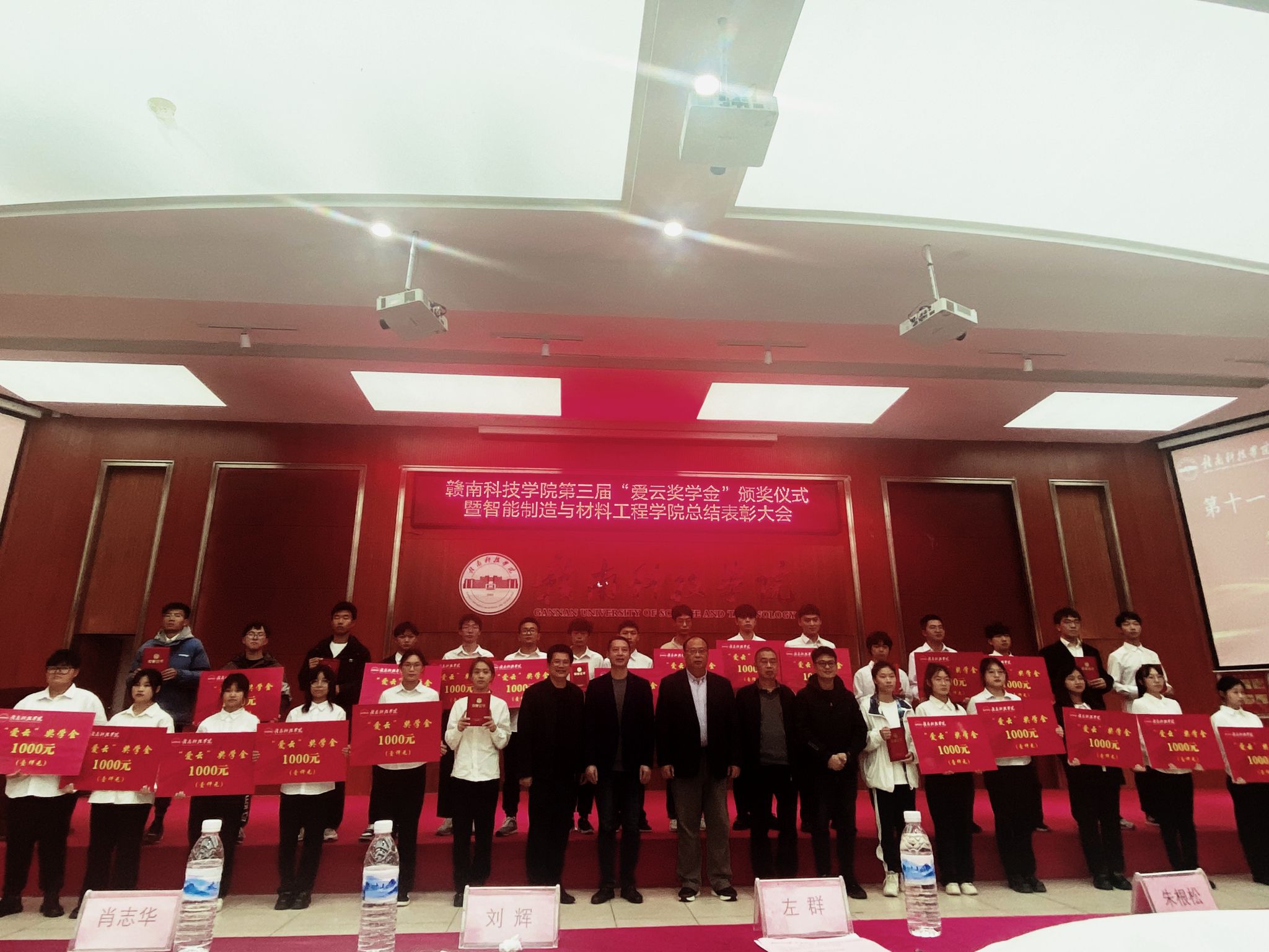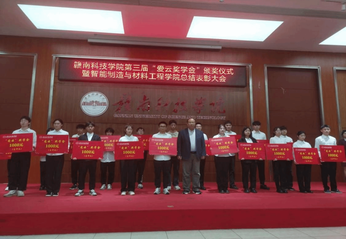 左群副校长为20名第三届“爱云奖学金”获奖者颁奖,“爱云奖学金”旨在于奖励和资助乙方学习成绩优异、自强自立、富有开拓创新精神的贫困生学子,主要针对bat365bat365官方网站(机电工程系)在校学生,共设立五年,每年两万元,合计十万元奖金。