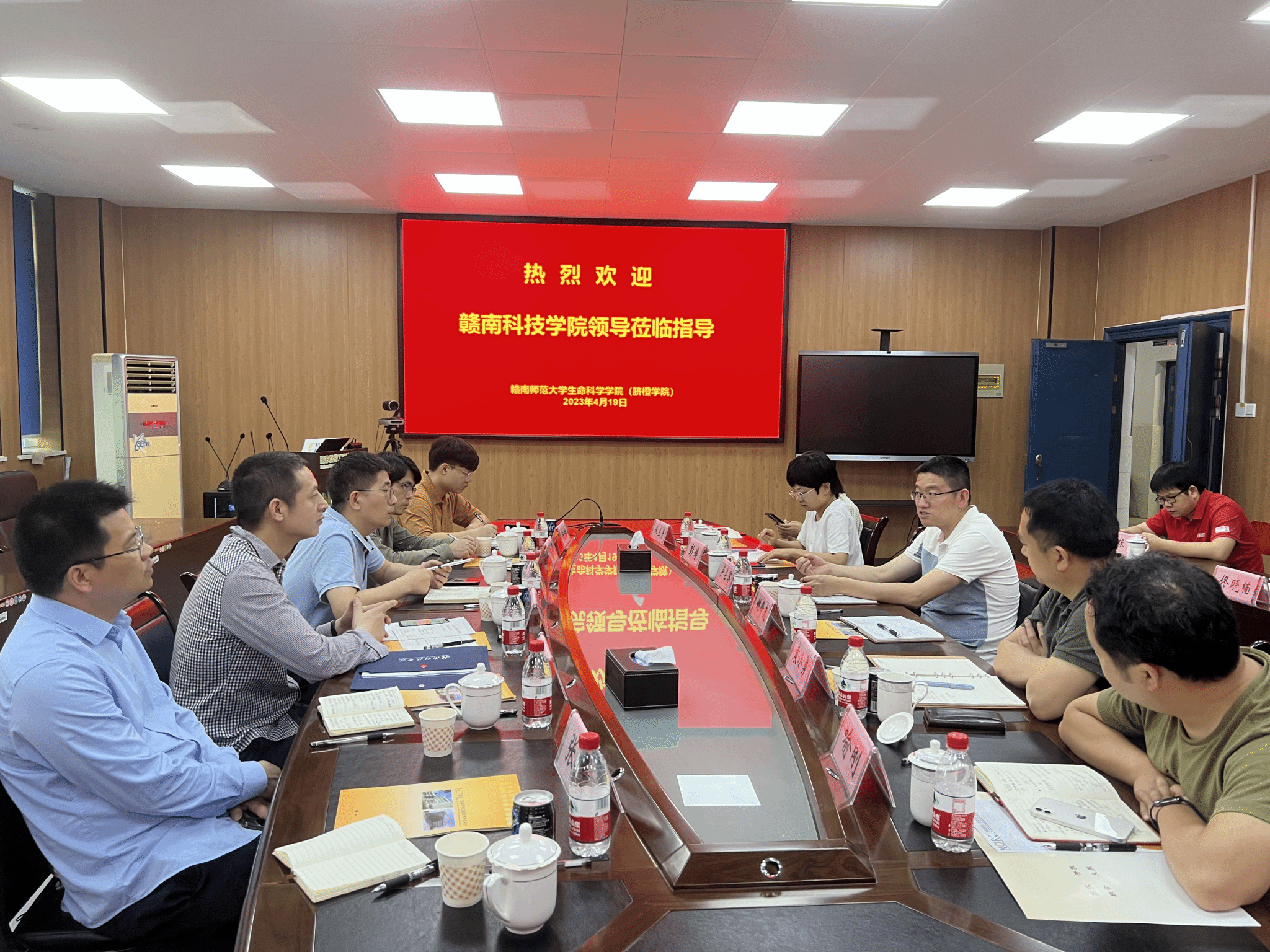 本网讯:4月19日,学校过渡期管委会委员付玉华带领下,智能制造学院刘辉等一行赴赣南师范大学调研现代产业学院建设,赣南师范大学生命科学学院(脐橙学院)院长卢占军、副院长彭婷与袁小勇,赣南师范大学国家脐橙工程技术研究中心副主任姚锋先等热情接待并举行了座谈会,赣南师范大学生命科学学院(脐橙学院)果树教研室主任米兰芳、蔬菜花卉教研室主任喻刚、果树教研室副主任王敏、教学科研办公室主任佟晓楠、教学秘书黄振陆,智能制造与汽车工程学院关开荣、陈闻、张雨、钟赫等参加座谈会。