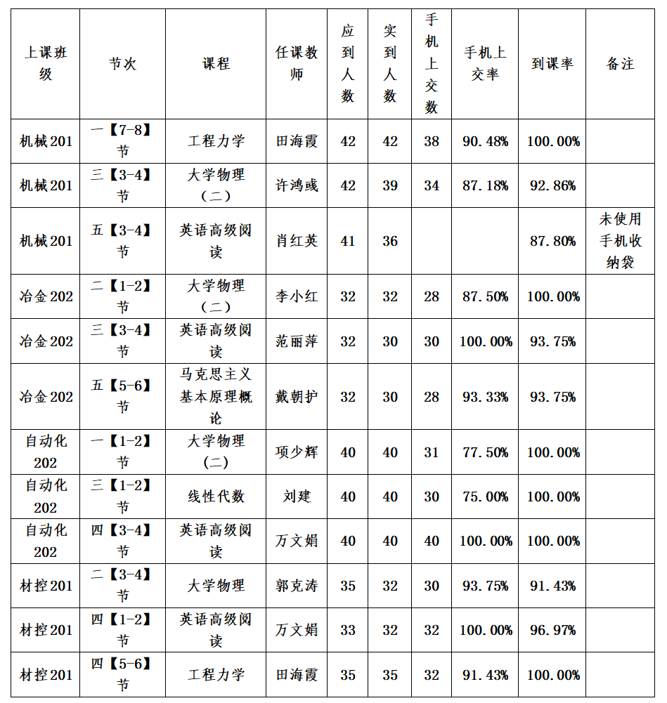 一、第四周抽查到课率情况通报