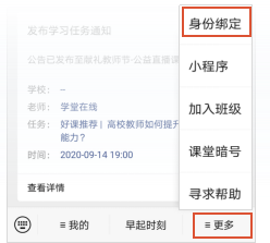 ② 「雨课堂」公众号右下角,点击「更多」-「身份绑定」