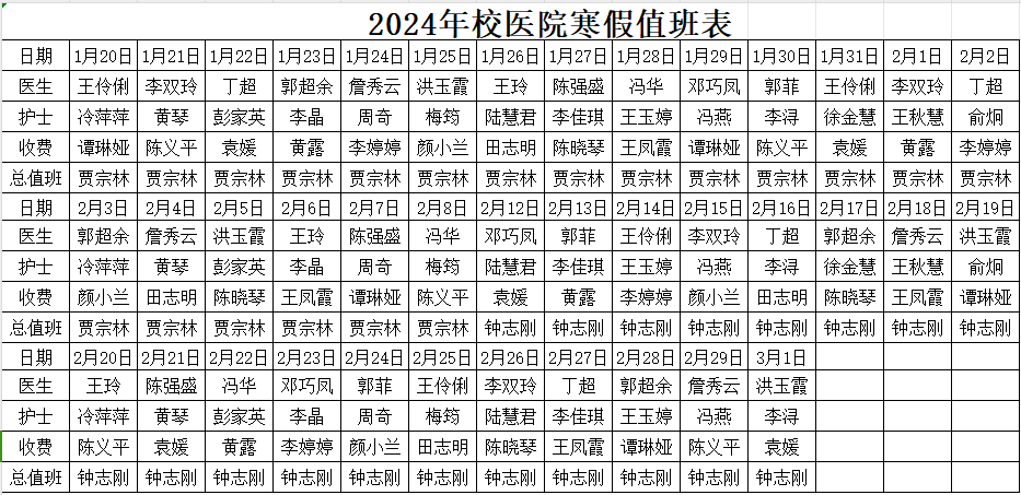5.如有特殊情况,请及时上报总值班,总值班负责处理当天事务:贾院长:13707928607 钟副院长:13879219011
