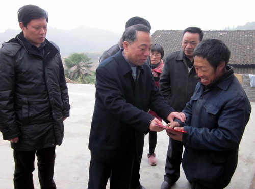 元月13日,校长甘筱青在离退休职工管理处处长周茂生、工会主席金葆金、扶贫工作队员杨泽明的陪同下,到beat365定点包扶贫困村---武宁县上汤乡九宫村走访慰问。