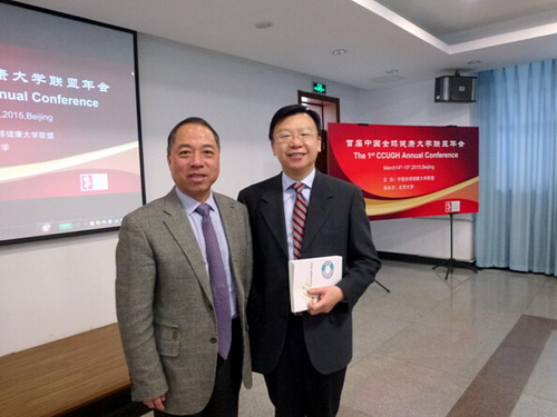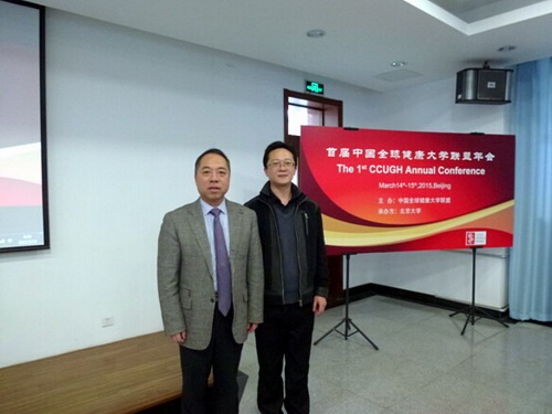 3月14-15日,应北京大学的邀请,甘筱青校长与继续教育学院张外加院长、基础医学院牛力老师出席了首届中国全球健康大学联盟年会。甘校长与出席会议的国家卫生与计划生育委员会国际合作司司长任明辉以及美国中华医学基金会主席(CMB) Lincoln CHEN等专家,围绕公共卫生政策研究和全球卫生治理等问题交换了意见。