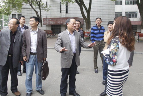 4月24日下午,甘筱青校长率领党办、保卫处、学生处、电子学院等部门负责人,来到浔东校区进行校园巡视。浔东校区管理办公室、基础医学院负责人参加了巡视。
