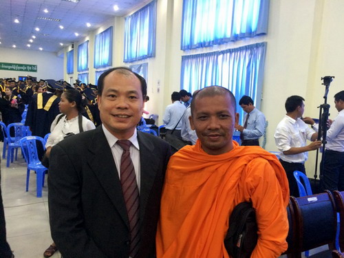 柬埔寨王家研究院孔子学院中方院长帅式毅和全体孔子学院亚欧大学中文系教师志愿者应邀参加了毕业典礼。