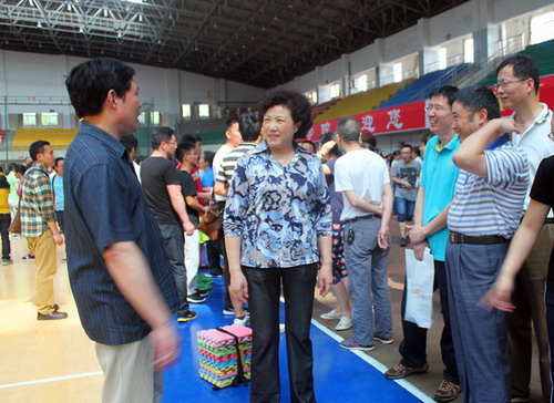 为丰富教职工的校园文化生活,加强教职工之间的沟通与交流,营造全民健身的良好氛围。5月22日下午,由校工会在体育学院的大力协助下举办第六届教职工趣味运动会在校室内田径馆举行,副校长吴桃娥到场为选手们加油。