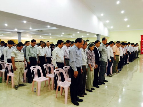 7月19日,由柬埔寨中国和平统一促进会举办的“纪念中国人民抗日战争暨世界反法西斯战争胜利70周年座谈会”在柬埔寨端华分校大礼堂举行。中国驻柬埔寨大使布建国等使馆官员,柬埔寨中国和平统一促进会副会长高华、秘书长黄瑞华,柬埔寨王家研究院孔子学院中方院长帅式毅,在柬华人华侨代表等约500人出席座谈会。孔子学院公派教师及汉语教师志愿者代表20人参加了座谈会。