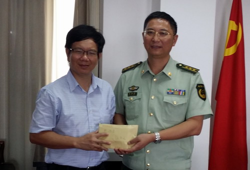 在“八一”建军节即将来临之际,7月30日上午,王万山副校长在学生处刘平处长等同志陪同下,走访慰问了武警九江支队,并与武警九江支队陈梅春支队长、王中华参谋长等领导进行了座谈。