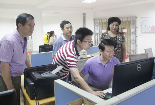 在远程网录取现场,郑翔书记听取了招生与就业处肖国丰处长关于招生情况的汇报,了解了目前的工作进程,并饶有兴致地观看了工作人员的实际操作。截至目前,除山西、云南、福建三省的本科录取尚在进行之中外,beat365在其他省份的本科录取工作已基本结束,下一步将进行专科的录取工作。