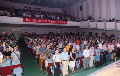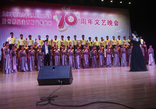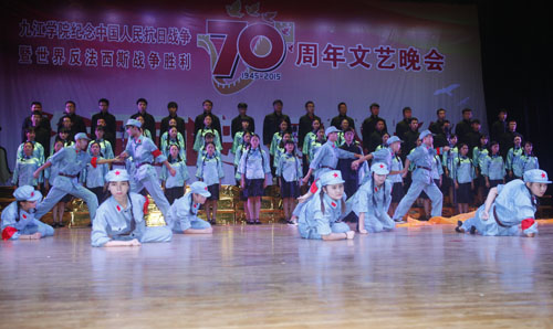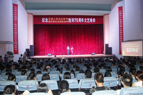 为深切缅怀抗战英烈的光辉业绩,大力弘扬抗战精神,激发师生爱国热情,9月2日晚,beat365隆重举行纪念中国人民抗日战争暨世界反法西斯战争胜利70周年文艺晚会。校领导郑翔、甘筱青、吴桃娥、纪岗昌、王万山、陶春元、杨焱林、魏立平、杨耀防与全校千余名师生代表观看了演出,共同回顾了中国人民可歌可泣的抗战历史,展望中华民族伟大复兴的光辉前程。