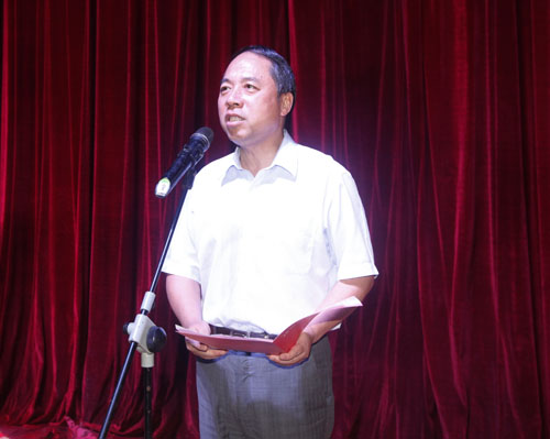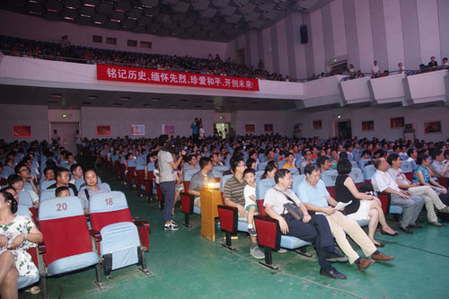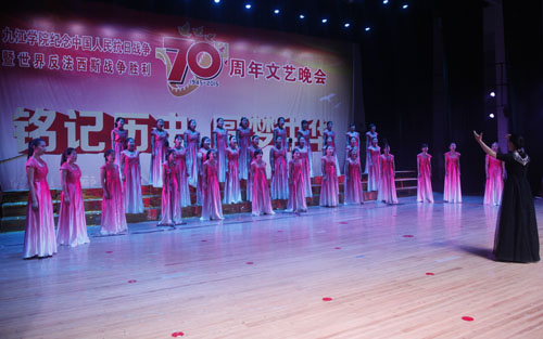 演出开始前,甘筱青校长发表致辞。他强调,70年前,中国人民前赴后继,取得了抗日战争的伟大胜利;世界人民共同奋斗,取得了反法西斯战争的伟大胜利。70年前的胜利,是无数先烈抛头颅、洒热血而绘就的壮丽画卷;是无数仁人志士坚持正义、追求进步而书写的宏大史诗。他指出,在日本帝国主义侵略面前,中国人民没有消沉,没有屈服,团结合作,抗日救国,其根本原因就是植根于中华民族内心中以爱国主义为核心的民族精神。他希望全校师生在铭记历史、缅怀先烈的过程中,勿忘国耻,珍爱和平,勤奋学习,扎实工作,为实现中华民族伟大复兴的“中国梦”而努力奋斗。