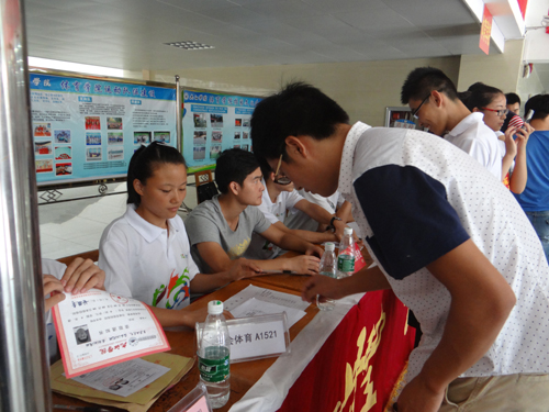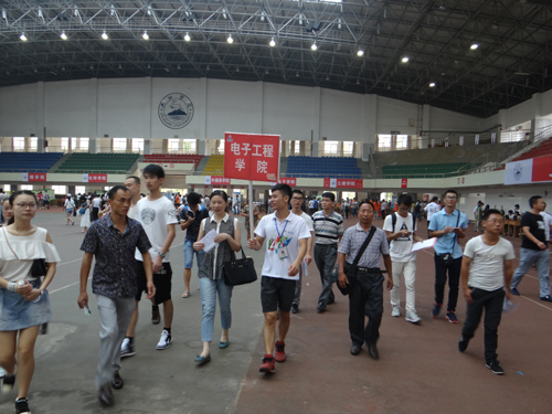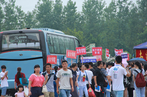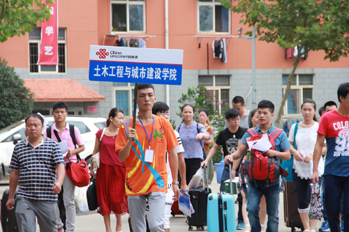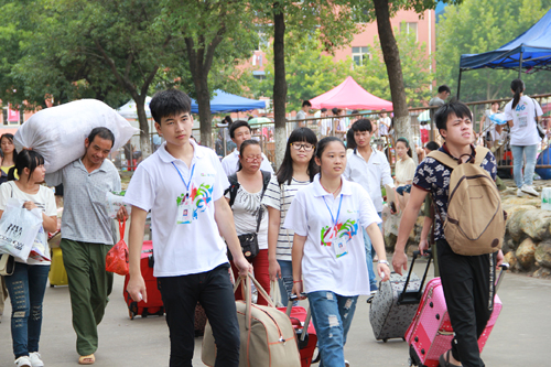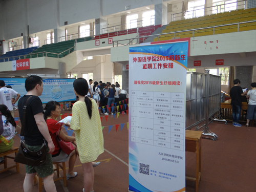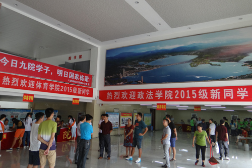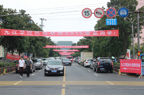 为方便提前来校的新生报到,学校的迎新工作9月3日下午就已经开始。9月4日清晨迎新工作全面展开。5点30分,学校13辆迎新校车分赴九江火车站、庐山火车站和九江长途汽车站,迎接新同学和家长到各自校区报到。当校车驶入报到现场时,早已等候在这里的迎新工作人员和志愿者高举着各个学院的引导牌在车门处热情地招呼着自己学院的学弟、学妹,带领他们到学院接待点存放行李、办理各项报到手续。