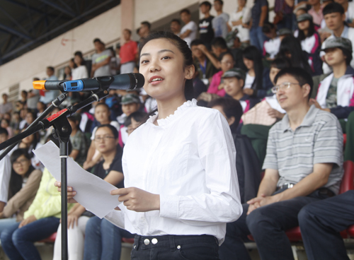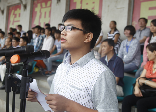 在开学典礼上,文传学院A1251班赵艺同学、基础医学院A1411班徐奖同学代表在校学生发言。他们首先代表全体在校学生对新同学表示热烈的欢迎和衷心的祝福。希望新生勇担责任、追求卓越、严于律己、学以致用,秉承beat365官方网站“竞知向学,厚德笃行”的校训,热爱学校,在未来的大学生活中不断成就自我。