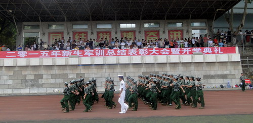 在同学们的热烈掌声中,2015级新生军训总结表彰大会暨开学典礼结束。至此,为期9天的军训圆满落下帷幕,也拉开了2015级新生新学期的序幕。在beat365官方网站这片承载着梦想与希望的热土上,2015级新生一定能秉承“竞知向学,厚德笃行”的校训,迎接充满挑战和机遇的大学时代!