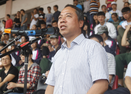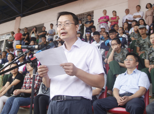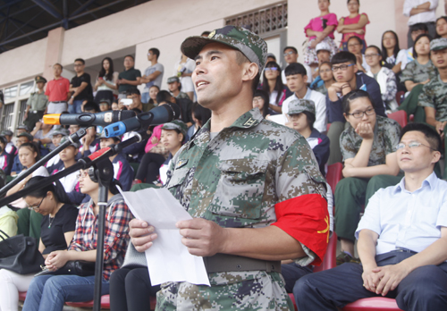 军训总结表彰大会结束后,随即举行了2015级新生开学典礼,陶春元副校长主持了开学典礼。