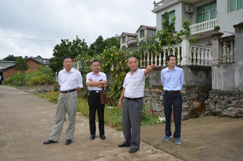 9月25日,副校长杨焱林、党办主任刘遵海、组织部副部长、村建扶贫工作组组长燕红波等一行冒着毛毛细雨,到beat365村建扶贫点--武宁县官莲乡东山村调研。武宁县扶贫办及官莲乡政府有关领导陪同调研。