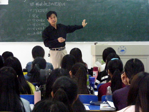 熊育兰老师围绕着现象与本质、个性与共性、内涵与外延等基本逻辑概念展开论述,结合同学们喜闻乐见的事物,在密集的师生问答中完成对理论知识的传授。