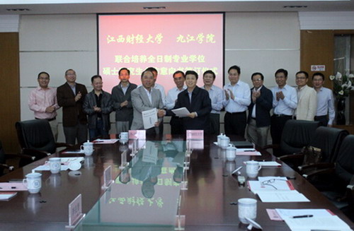 交流会上,两校举行了联合培养硕士研究生合作意向书签字仪式。仪式结束后,在江西财经大学副校长吴照云的陪同下,甘校长、杨副校长还考察了江西财经大学的省级2011协同创新中心,并表示要加强两校间协同创新中心的交流与合作,共同提高科研成果水平和影响力。两校各专业硕士学科点之间还分别从师资队伍建设、硕导聘任、学科建设等多个方面进行了广泛的交流。