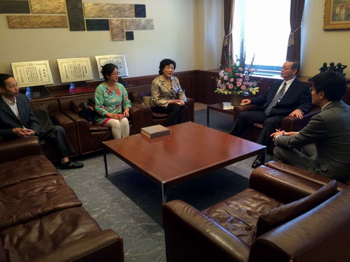 代表团还与国际交流处处长原百年、招生处处长伊藤栄一郎、招生处课长细萱和宽以及熊达云教授、张华博士一起讨论学生短期学习(包括半年期和一年期两类)事宜,双方在学生派出时间、学分认定等问题上达成一致意见。代表团还就其他的一些事项特别是教师进修问题进行了沟通,基本达成了1至3个月的教师进修协议。