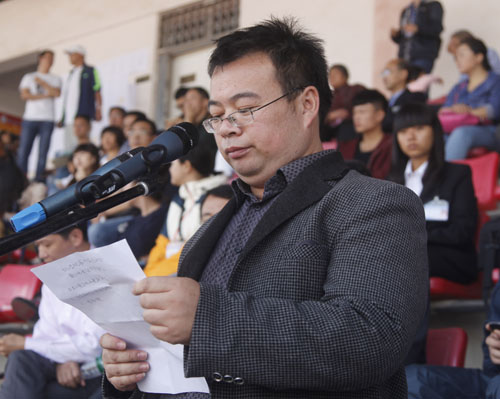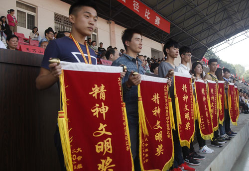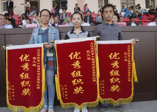 运动会组委会委员、校团委书记闫来英宣布了精神文明奖获奖单位名单。会计学院、土建学院、旅游学院、信息学院、外语学院、经管学院、电商学院、机材学院获得学生组精神文明奖;土建学院、信息学院、图书馆获得教工组优秀组织奖。