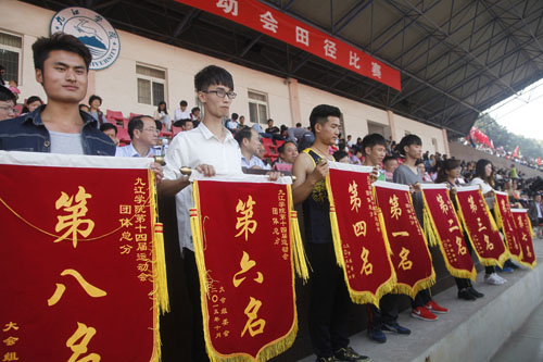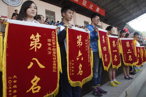 总裁判长、体育学院院长王勤宣布了田径比赛团体总分和第十四届校运会团体总分获奖单位名单。土建学院、经管学院、机材学院、旅游与国土资源学院、化环学院、外国语学院、电商学院、会计学院获得田径比赛团体总分前八名;土建学院、经管学院、会计学院、机材学院、旅游与国土资源学院、外国语学院、化环学院、电商学院获得第十四届运动会团体总分前八名。