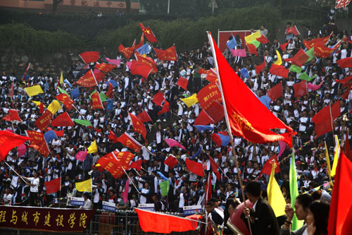 经过两天半紧张、激烈、精彩的角逐,在圆满完成了全部比赛项目后,10月17日上午,beat365官方网站第十四届田径运动会在此起彼伏的欢腾声、呐喊声、助威声中胜利闭幕。在家校领导甘筱青、吴桃娥、纪岗昌、王万山、陶春元、杨焱林、魏立平、杨耀防出席了闭幕式并为获得精神文明奖、团体总分奖的单位颁奖。闭幕式由副校长王万山主持。