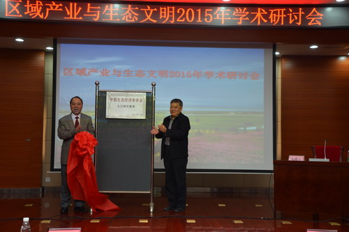 开幕式上,甘筱青校长与李周常务副理事长还共同为“中国生态经济学学会九江研究基地”进行了揭牌。