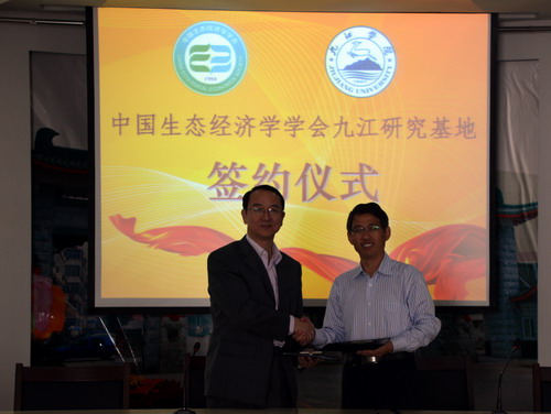 10月15日上午,陶春元副校长与中国生态经济学会秘书长还签署了共同建立“中国生态经济学会九江研究基地”协议。