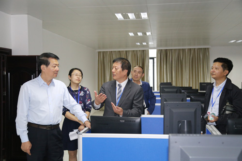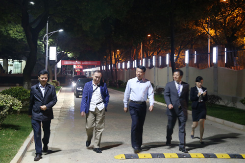 郑书记首先来到行政办公楼九楼会议室、四楼会议室查看会场情况,随后前往装饰一新的临床技能中心以及教学楼,重点查看了临床技能中心六楼数码显微互动实验室、检验综合实验室,四楼模拟产房,三楼中央监控室,二楼模拟ICU、急救技能训练室,一楼外科临床技能实验室、模拟手术室等,他对临床技能中心规范的设置、先进的设备给予了肯定。随后,郑书记查看了一号教学楼装修改造情况,看到校园环境焕然一新,干净、整洁,郑书记点头称赞。晚间,郑书记还参观了校园夜景,夜晚的校园仍然灯火通明,尤其是改造后的围墙,既起到了夜间照明效果,又宣传了校园文化,美观、别致、大方。来到住院部一楼,休闲茶吧温馨舒适,现场的钢琴和小提琴合奏旋律美妙动听,郑书记不襟驻足聆听并对艺术学院演奏的同学提出建议,他对临床医学院/附属医院浓厚的文化氛围表示赞许。