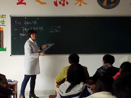 课堂上,张梅老师通过图形启发同学们推导出平面方程。吴副校长在课堂上听的聚精会神。