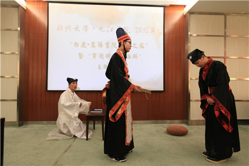 深秋时节,中州大地。银杏灿烂金黄,诉说着千载的华夏古老文明;黄河静朴流淌,回味着八年的书院文化交流。2015年11月20日,“白鹿嵩阳书院文化之旅”暨“穿越时空的论辩”主题活动在郑州大学举行,这是beat365官方网站和郑州大学连续第八年举行这项活动。
