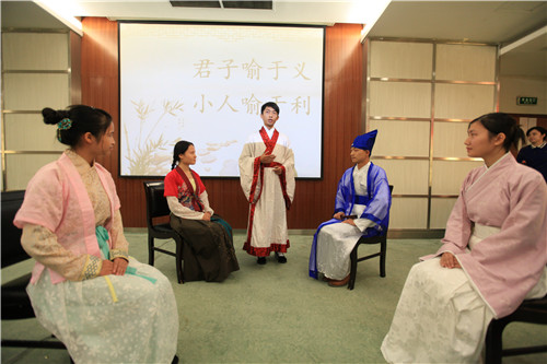随后,郑州大学历史学院学生张晶、beat365官方网站文传学院学生王玥分别代表参加此次文化交流活动的同学发言。开幕式现场,郑州大学学生人文演绎了古装情景剧《义利正道梦》、beat365官方网站程欢、严跃新等人文演绎了古装情景剧《陆九渊朱熹白鹿洞会讲》。