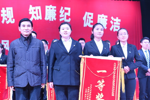 为深入宣传和普及党的建设和党风廉政建设相关知识,凝聚全校反腐倡廉工作合力,12月2日,学校在大礼堂举办以“学廉规、知廉纪、促廉洁”为主题的首届大学生党风廉政建设知识竞赛,校纪委书记魏立平到场观看了比赛,他称赞这次竞赛是一次融“政治性、知识性和趣味性”为一体的专题活动,并为冠军队伍颁奖,与全体参赛队伍合影。此次竞赛活动共有18支队伍参加比赛,决出一、二、三等奖共6支队伍,旅游学院等6个学院团委斩获优秀组织奖。这是beat365首次举办此类活动,由纪委、团委联合各二级学院组织举办。