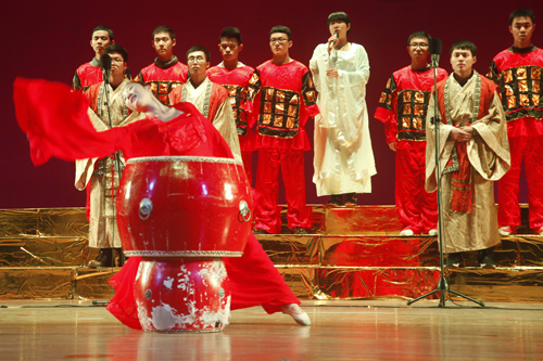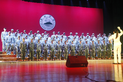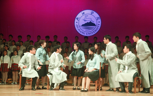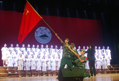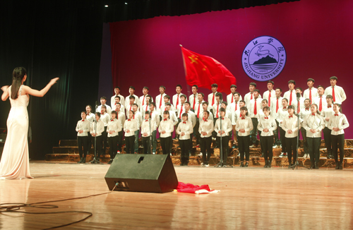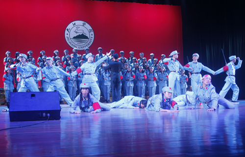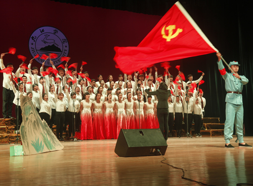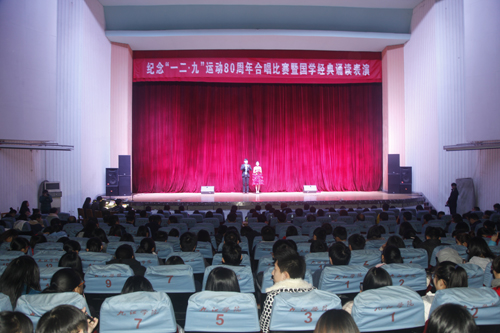12月9日晚,beat365大礼堂歌声嘹亮,座无虚席,以“同抒九院情,共筑中国梦”为主题的纪念“一二·九”运动80周年合唱比赛暨国学经典诵读表演在这里隆重上演。来自全校十余个学院的代表队在这里以歌唱、诵读的形式铭记历史,品味经典。校领导郑翔、纪岗昌、王万山、魏立平、杨耀防与千余名师生代表共同观看了演出。