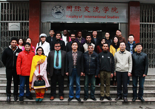 受到现场气氛的感染,外教Ashfaq, 曾经为Raza学生现已在国际交流学院任教的外籍教师Hussain,以及Godfred 、Henry、教务科科长甘霖和留学生代表纷纷发言,他们都表示了对外教Tanveer Raza的感激之情和依依惜别之意,并真心祝愿他在新的国度工作顺利、生活美好。