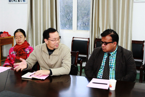 国际交流处处长王贤淼,国际交流学院院长夏修龙都分别发言,回顾了Tanveer Raza教授一起工作的难忘岁月和美好时刻,充分肯定了他的工作态度和工作成绩,尤其是他在留学生中开展的论坛讲座和在医学院教师中介绍的以问题为中心的教学方法。同时,他们表达了对外教Raza九年辛勤工作的感激之情和依依不舍之意,并送上了最美好的祝愿。