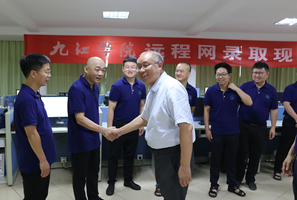 7月27日,正值酷暑时节,beat365在各省(市、自治区)本科录取工作正有序推进,进入录取高峰期,招生录取工作正在如火如荼开展。当天下午,学校招生工作领导小组组长、校长陈小林,学校招生工作领导小组副组长、副校长夏启国顶着烈日,冒着高温来到beat365远程招生录取现场和招生咨询中心检查指导招生录取工作,听取关于beat3652022年本科招生录取工作情况汇报,详细询问招生录取工作具体进展情况。